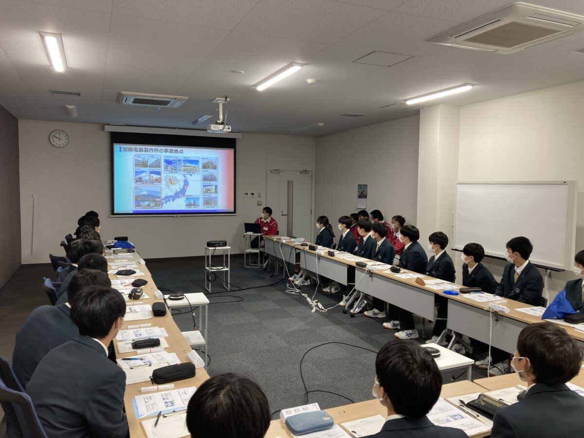 富士北稜高校 > 教育活動 > 電気情報系列 > 工業系列1年次生が企業・施設見学を実施しました 2025年11月12日カテゴリー: 教育活動 電気情報系列 機械テクノロジー系列 建築デザイン系列 工業系列1年次生が企業・施設見学を実施しました 11月11日(火)、工業系列の1年次生がキャリア教育の一環として、地元企業や公共施設の見学を行いました。 今回の見学は、地元の製造業や建築に触れる貴重な機会となりました。 機械テクノロジー系列の生徒は、キャノンアネルバ様を訪問。 電気情報系列の生徒は、加藤電器製作所様を見学しました。 企業の方から会社概要の説明を受けた後、実際の製造現場を見学させていただきました。生徒たちは、装置の大きさや精密な部品の製造工程に驚きながら、真剣な表情で見入っていました。 また、建築デザイン系列の生徒は、西桂町役場を訪問しました。こちらは建築家・隈研吾氏が設計された建物で、生徒たちにとっても学びの多い見学となったようです。 今回の見学を通して、生徒たちが地元の産業や建築に対する理解を深め、今後の学校生活や進路選択に活かしてくれることを期待しています。