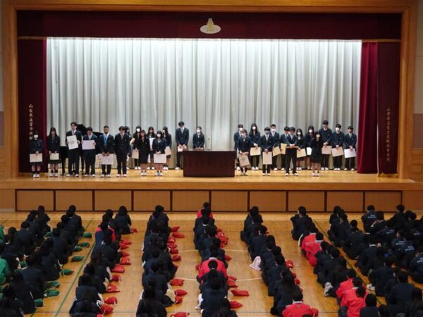 納め式では、各系列や部活動が全国大会や県大会での輝かしい成果を納めました。生徒の皆さんの努力と活躍に、会場は大きな拍手に包まれました。