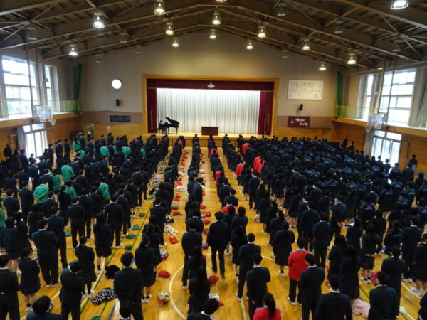 富士北稜高校 > 教育活動 > 教養系列 > 納め式・休業前集会 2025年12月24日カテゴリー: 教養系列 教務教育工学 福祉健康系列 学校行事 総合ビジネス系列 教育活動 部活動 電気情報系列 陸上競技部 生徒会指導 剣道部 ウエイトリフティング部 吹奏楽部 美術部 写真同好会 納め式・休業前集会 12月24日(水)、納め式と休業前集会を実施しました。 納め式では、各系列や部活動が全国大会や県大会での輝かしい成果を納めました。生徒の皆さんの努力と活躍に、会場は大きな拍手に包まれました。 休業前集会では、校長先生と生徒指導主事から大切なお話をいただきました。 生徒の皆さんが健康で充実した冬休みを過ごし、来年さらに飛躍できることを期待しています。