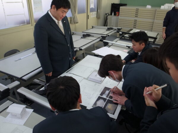 1月22日(木)、建築デザイン系列3年生15名が、卒業設計の発表会を行いました。与えられた敷地や条件をもとに、自分だけの住宅を設計し、模型を作って発表しました。発表後は、お互いの作品について意見を伝え合い、「発想が面白かった!」「もっとこうしたら良くなるかも」と、前向きなやりとりがたくさん見られました。緊張しながらも、自信を持って発表する姿が印象的でした。