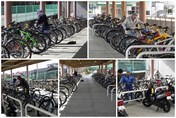 4月14日(金)に富士吉田自転車組合加盟店のご協力により、172台の自転車とバイクの点検が行われました。整備不良をなくし自転車盗難を未然に防ぐことを目的に行われました。自転車組合の皆さん、朝早くから来校し点検していただきありがとうございました。