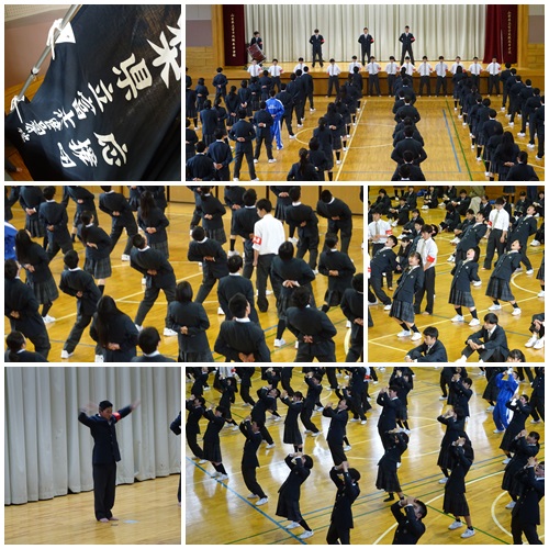 4月24日放課後、体育館にて応援団による1年次生への応援練習が行われました。姿勢、声出し、校歌、エールなどの練習を精一杯がんばりました。