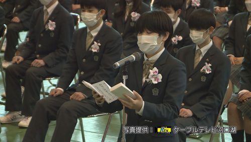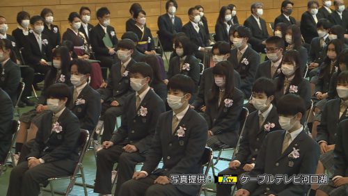 卒業式の模様はケーブルテレビ河口湖様のご協力でYouTubeで生配信され、その後のLHRの様子は、クラスごとにTeamsで配信されました。