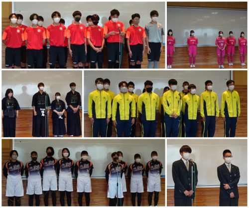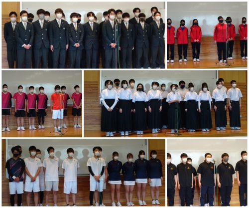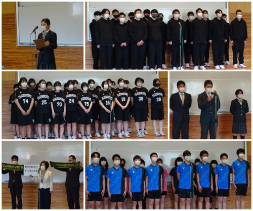 令和4年4月22日に総合体育大会へ参加する選手の壮行会が視聴覚室から各教室へテレビ放送され、選手が意気込みを発表し、生徒会長と校長先生と教頭先生から応援のことばをいただきました。