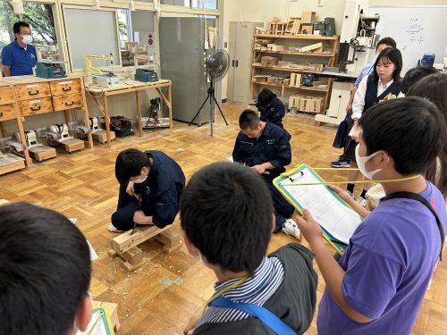富士北稜高校 > 教育活動 > 明見小学校6年生が見学に来てくれました 2023年7月6日カテゴリー: 教育活動 明見小学校6年生が見学に来てくれました 7月5日(水)に小学校連携事業の第1弾として明見小学校6年生が来校してくれました。授業を見学し、小学校と高校の違いを肌で感じ取っていただきました。工業系の実習を見学した際は、飛び散る火花や見慣れない工具に驚いた様子を示してくれました。その素直な感情表現に高校生達は学習している内容に誇りを持てたようでした。明見小6年生の児童のみなさん、また遊びに来てください!