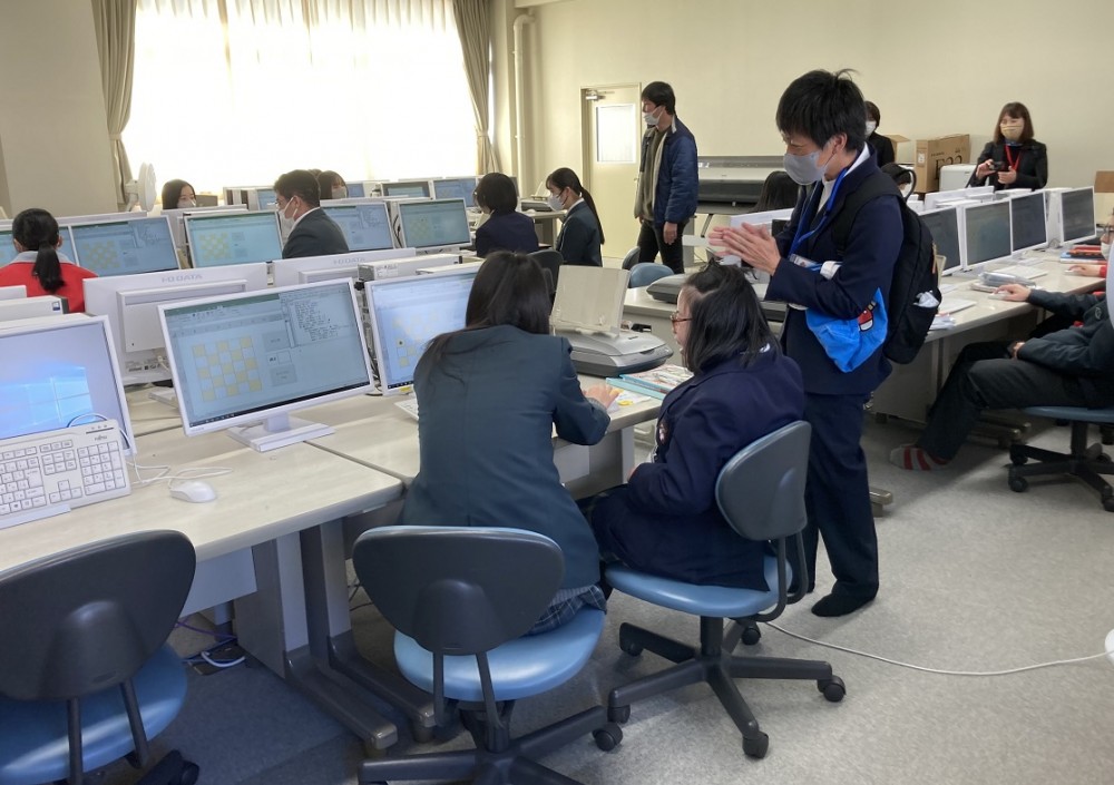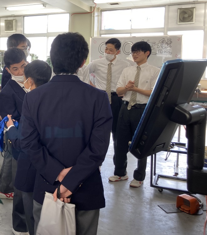 富士北稜高校 > 学校行事 > ふじざくら支援学校との交流会 2023年12月18日カテゴリー: 学校行事 ふじざくら支援学校との交流会 12月14日(木)ふじざくら支援学校高等部の1・3年生計24名が本校を訪れました。はじめの会では、ふじざくら支援学校教頭先生のお話や生徒会長のごあいさつの後、学校紹介ビデオや北稜クイズ、吹奏楽演奏のビデオ&生演奏も聴いていただきました。その後、3年次生徒会・1年次ボランティア委員の案内で4つの系列のスペシャル授業を見学したり体験したり、スタンプラリーをしながらの北稜探検ツアーを行いました。 *建築デザイン系列では、家を建てるための図面を書いている様子や椅子等の展示、 *機械テクノロジー系列では、CNC旋盤での金属加工の様子、 *総合ビジネス系列では、プログラミングの授業で作成したモグラたたきゲームを、 *電機情報系列では、黒い線上を走る車や音の出るセンサー、ドローン操作等を、 体験していただきました。 終わりの会では、ふじざくら支援学校の皆さんが、フジファブリックの「若者のすべて」を合唱してくれました。最後に両校で記念写真を撮り、握手したりハイタッチしたり短い時間でしたが交流を深めました。