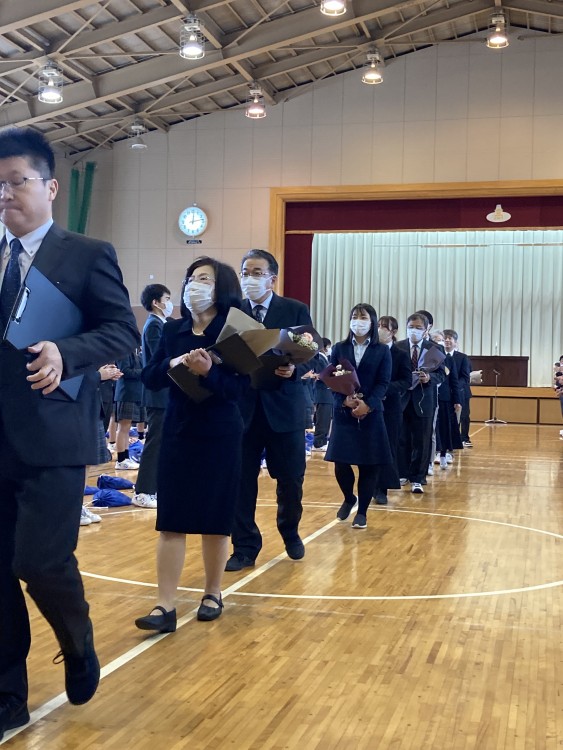 富士北稜高校 > 学校行事 > 令和5年度終業式および離退任式 2024年3月25日カテゴリー: 学校行事 令和5年度終業式および離退任式 本日令和5年度終業式および離退任式が行われました。 この年度末で本校を去る12名の先生方からお話をいただきました。 今まで富士北稜高校にご尽力頂きましてありがとうございました。 新天地でのご活躍をお祈り申し上げます。