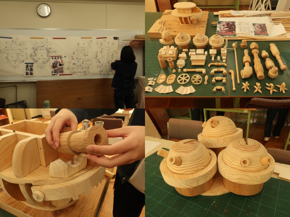 建築デザイン系列の3年次生が、課題研究の一環で「ハウルの動く城」の模型を作りました!この作品は、1年間かけて図面をもとに細かな部品を一つひとつ丁寧に作り、組み上げて完成した力作です。