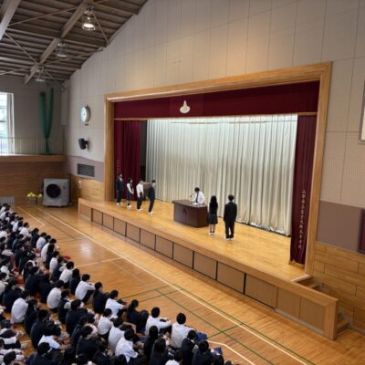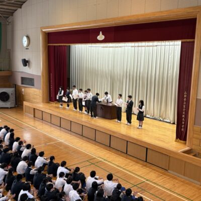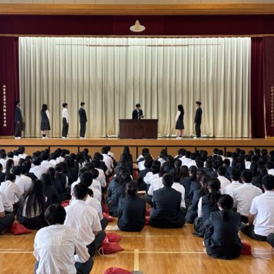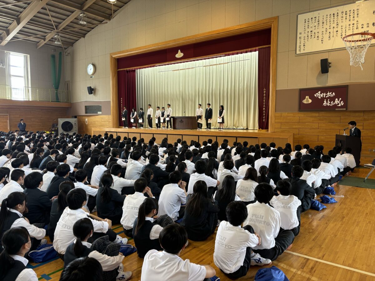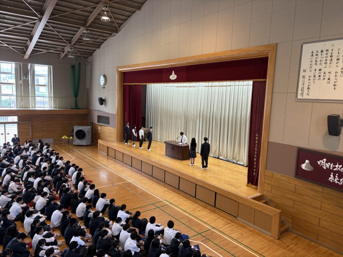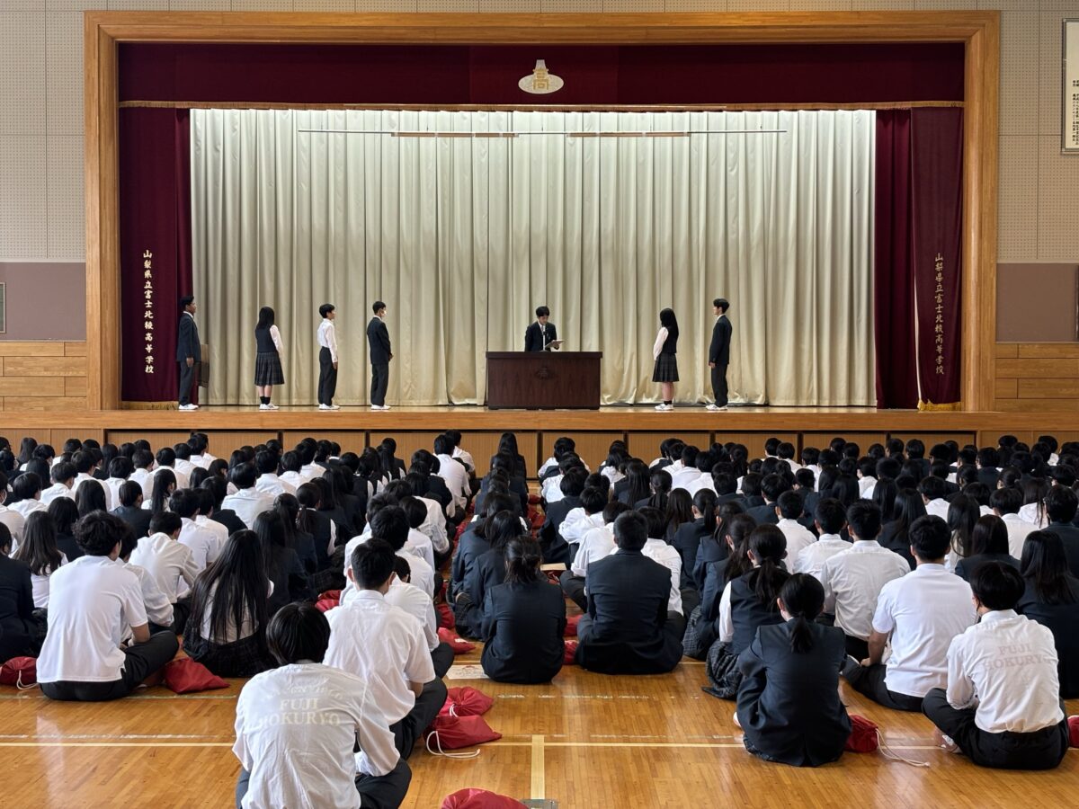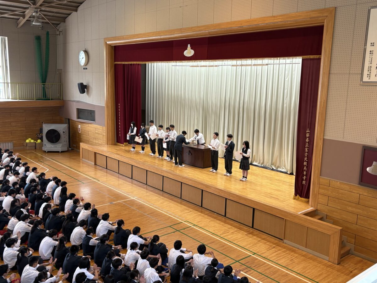 各部が大会で納めた成績を披露しました。また、関東大会出場が決定した部から抱負が述べられ、教頭や生徒会長からは激励の言葉が送られました。