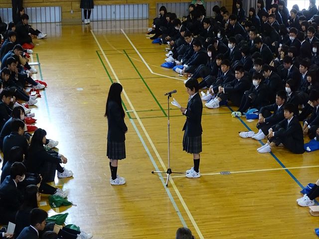 【新入生代表 佐々木萌波(富浜中出身)さんによる挨拶】