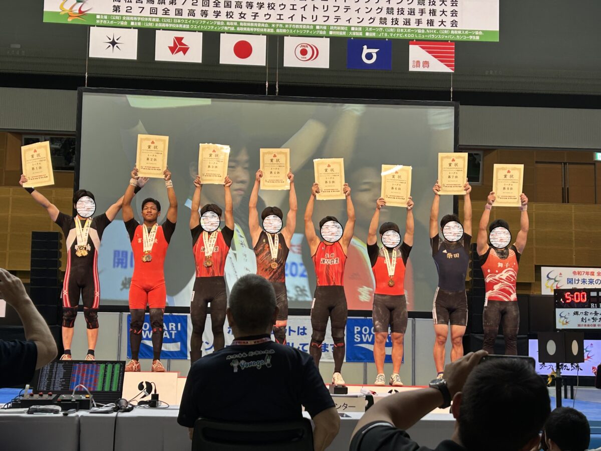 富士北稜高校 > 部活動 > ウエイトリフティング部 > ㊗後藤歩レオンス君 インターハイ重量挙げ準V 2025年8月20日カテゴリー: 部活動 ウエイトリフティング部 ㊗後藤歩レオンス君 インターハイ重量挙げ準V 鳥取県米子市で行われた全国高等学校総合体育大会(インターハイ)ウエイトリフティング67kg級において、3年生の後藤歩レオンス君が準優勝しました。また、種目別クリーン&ジャーク競技においては、自己ベストを更新する135Kgを挙げ1位となりました。後藤君は高校から競技を始め、主顧問の熱心な指導のもと、本校の部員や他校の選手らと切磋琢磨する中で成長し、6月には関東大会を制しました。全国でも表彰台を目指し挑んだ今大会で見事に目標を達成しました。 本校ウエイトリフティング部は個人として2年連続全国大会入賞です! 【C&J表彰式】 【C&J自己ベスト135Kgを成功】 【総合表彰式】