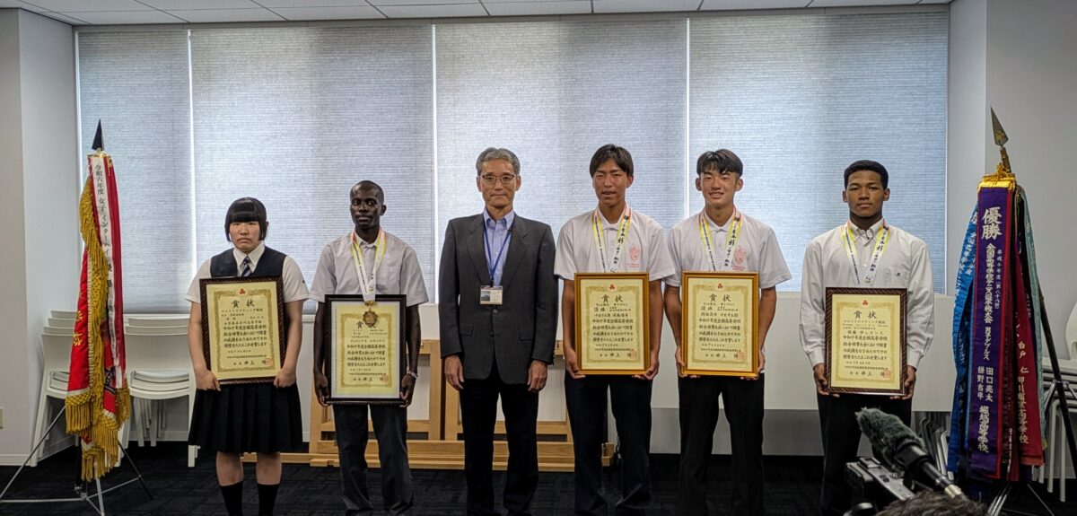 本日、インターハイ優勝報告会が県庁で行われ、教育長から労いのお言葉をいただきました。