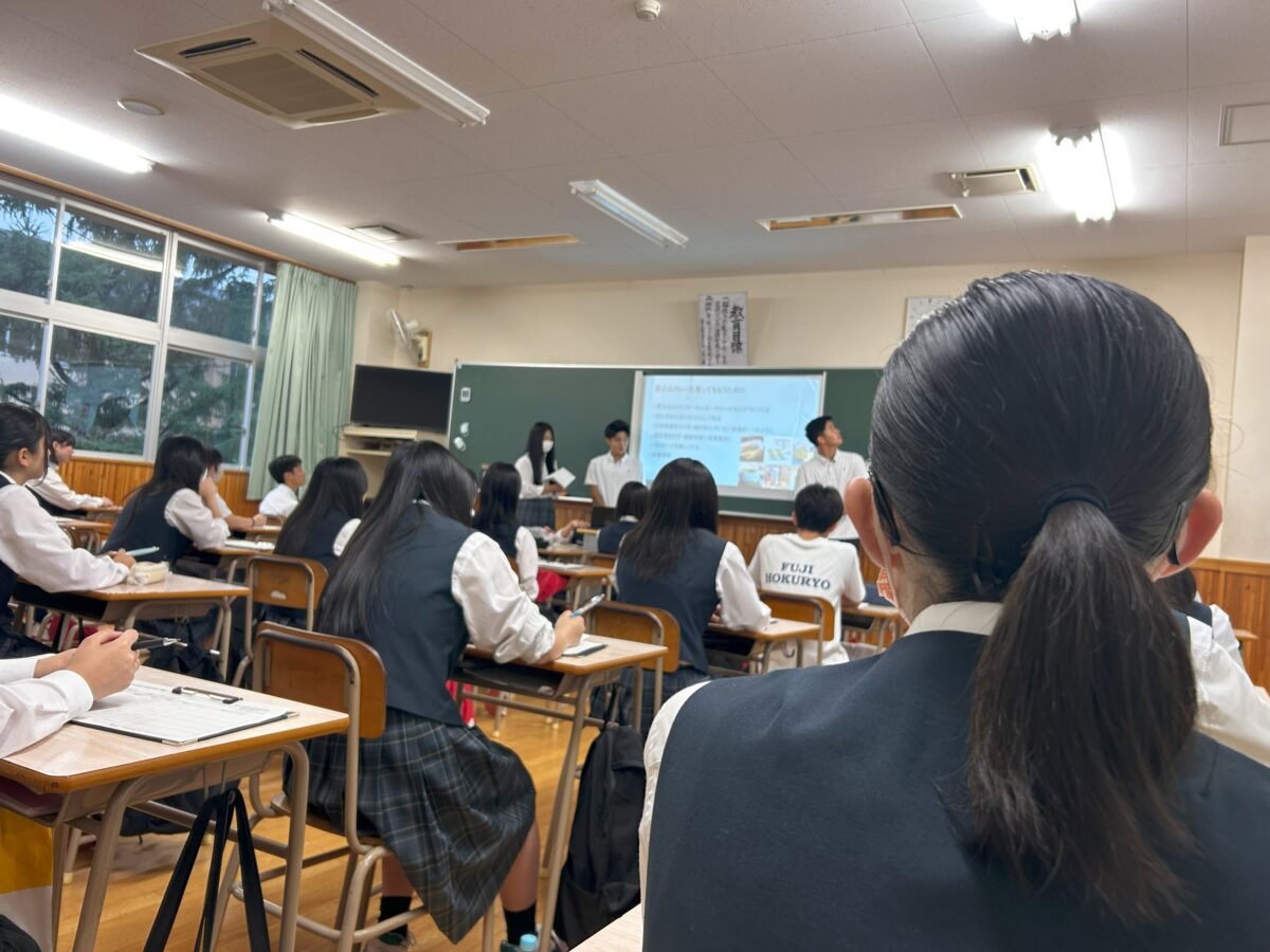 富士北稜高校 > お知らせ > 富士北稜高校「総探の日」開催! 2025年9月8日カテゴリー: お知らせ 富士北稜高校「総探の日」開催! 9月5日(金)に2年次生の総探発表会が行われました。1年次の後期から取り組んできた富士吉田市の課題解決を発表しました。高校生なりの柔軟な発想がみられました。1・3年次生は発表を聞き、1年次はこれからの探究のヒントにし、3年次は昨年を思い出してアドバイスを行いました。2年次生には来年度各系列で行う課題研究につなげてほしいと思います。